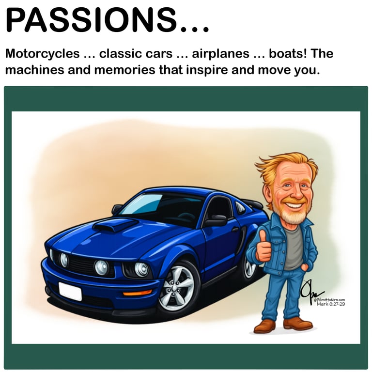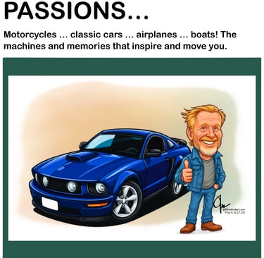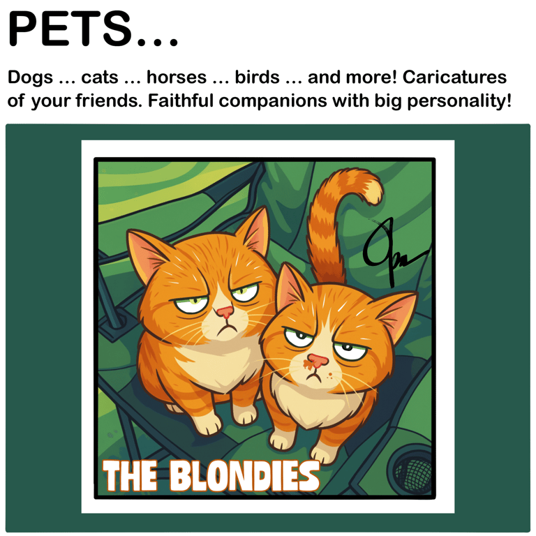 I create custom caricatures and folk-inspired artwork that celebrate what matters most — your family, your home, your animals, your ride, your story.